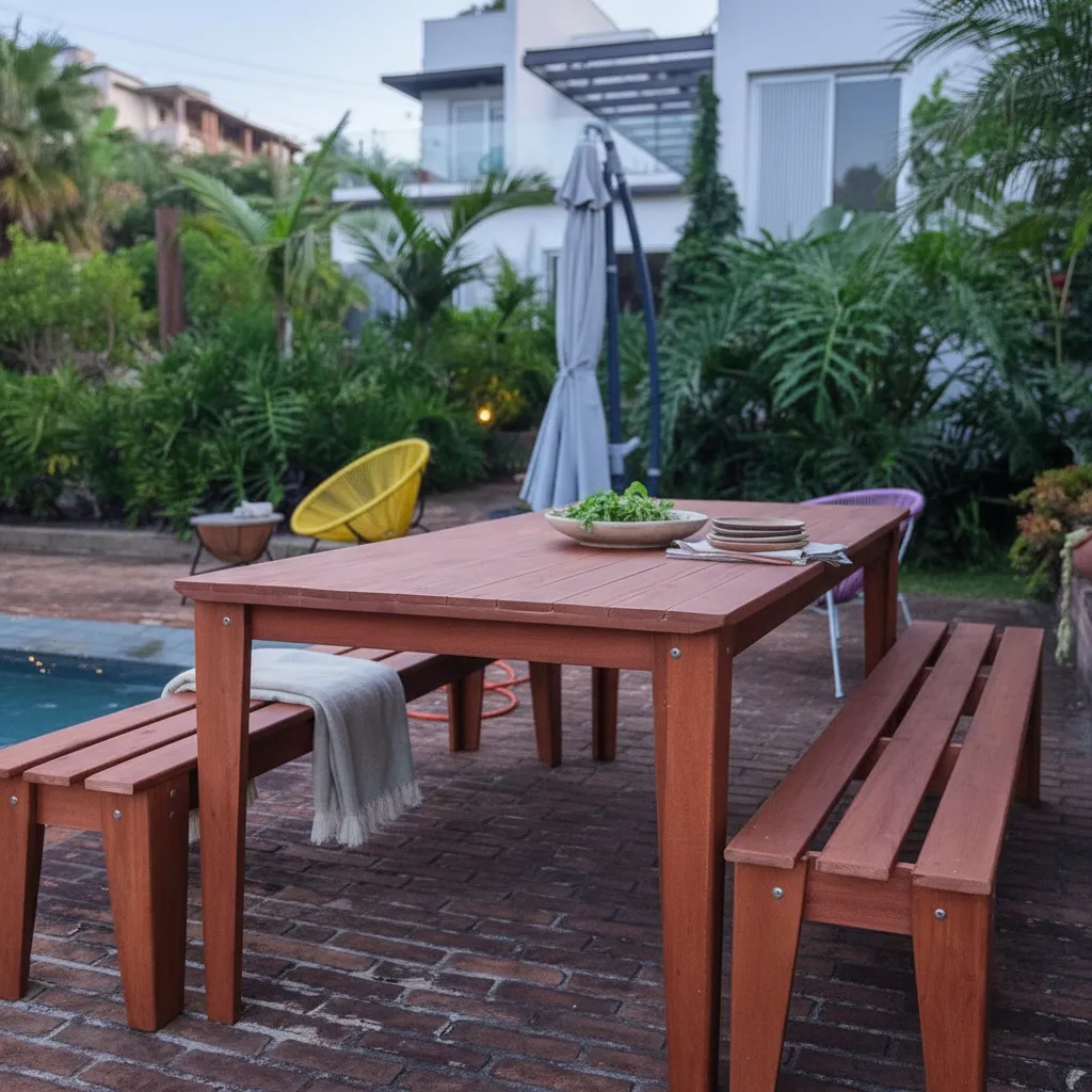 O Jogo de Mesa com Bancos Penafort é a escolha perfeita para quem busca beleza, durabilidade e aconchego no ambiente. Produzido em madeira maciça de eucalipto, traz um visual rústico e elegante que transforma salas de jantar, áreas gourmet e varandas.